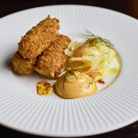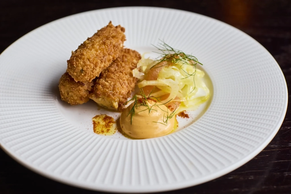 An advertising image of a plated Lobster & Crab Croquette Mothers Day dish available at Metro venues.